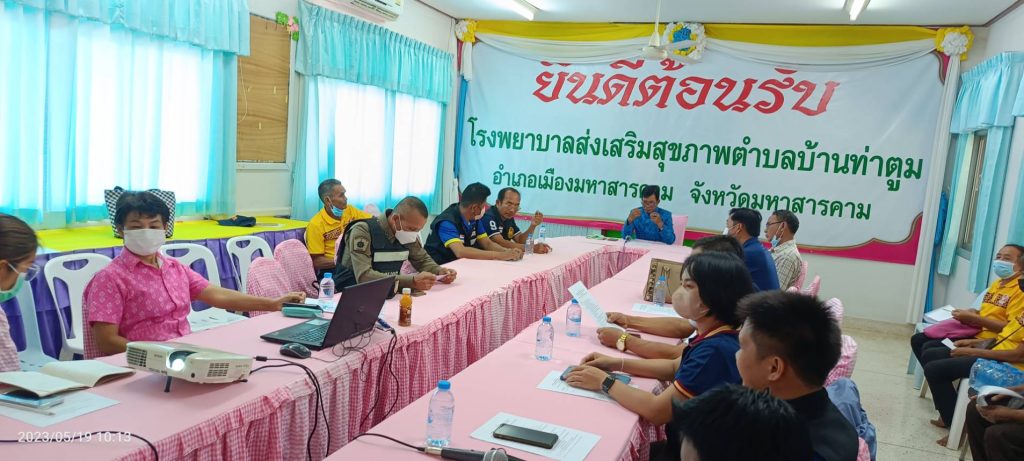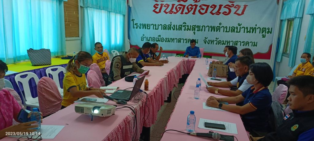 สภ.ท่าตูม (วันนี้19 พค.2566) เวลาประมาณ 10.00 น. พ.ต.ท.วิสิทธิิ์ นะราวัง สว.สภ.ท่าตูม มอบหมายให้ ร.ต.ท.โสภณ ทองวิเศษ รอง สว(ป) ร้อยเวร20 ประชุมร่วม เจ้าหน้าที่รพ.สต ,อบตท่าตูม เรื่อง การดูแลผู้ป่วยทางจิตเวช ณ รพ.สต ท่าตูม