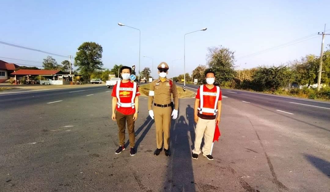 งานจราจร ร่วมกับกู้ชีพ อบต.ห้วยแอ่ง อำนวยความสะดวกการจราจรกับผู้ใช้รถใช้ถนน เพื่อลดอุบัติเหตุบนท้องถนน บริเวณ จุดกลับรถ บ้านห้วยแอ่ง ต.ห้วยแอ่ง อ.เมือง จว.มหาสารคาม